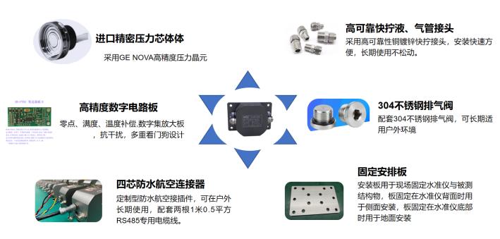 沉降是一個緩慢過程,在任何較短時期,反映到儲液罐液面的變化都會非常細微,能否實時、精確地檢測到這個微小變化,反映出地基的微小沉降,做到防微杜漸,是衡量一個靜力水準儀產(chǎn)品好壞的關鍵,這對系統(tǒng)所集成液位傳感器的實時性、精密性提出了極高要求。由于是戶外安裝,液位傳感器的溫度系數(shù)、防水性、防雷擊都是關鍵技術。另外,靜力水準儀整機的安裝尺寸和易更換性也是重要的技術指標,是由一個高精度的液位計,加上儲液罐、保護罩、通聯(lián)氣、水管等部件組成。